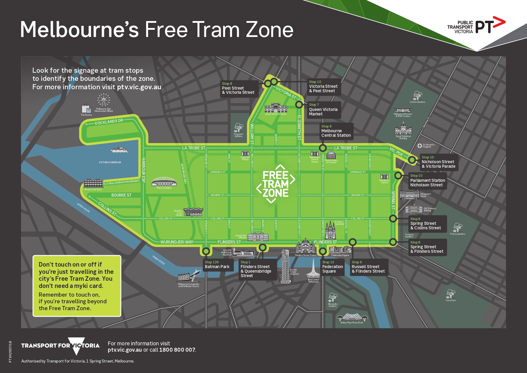 - 免費電車區: 墨爾本市中心設有免費電車區域,於此區域內無需付費即可使用電車移動。