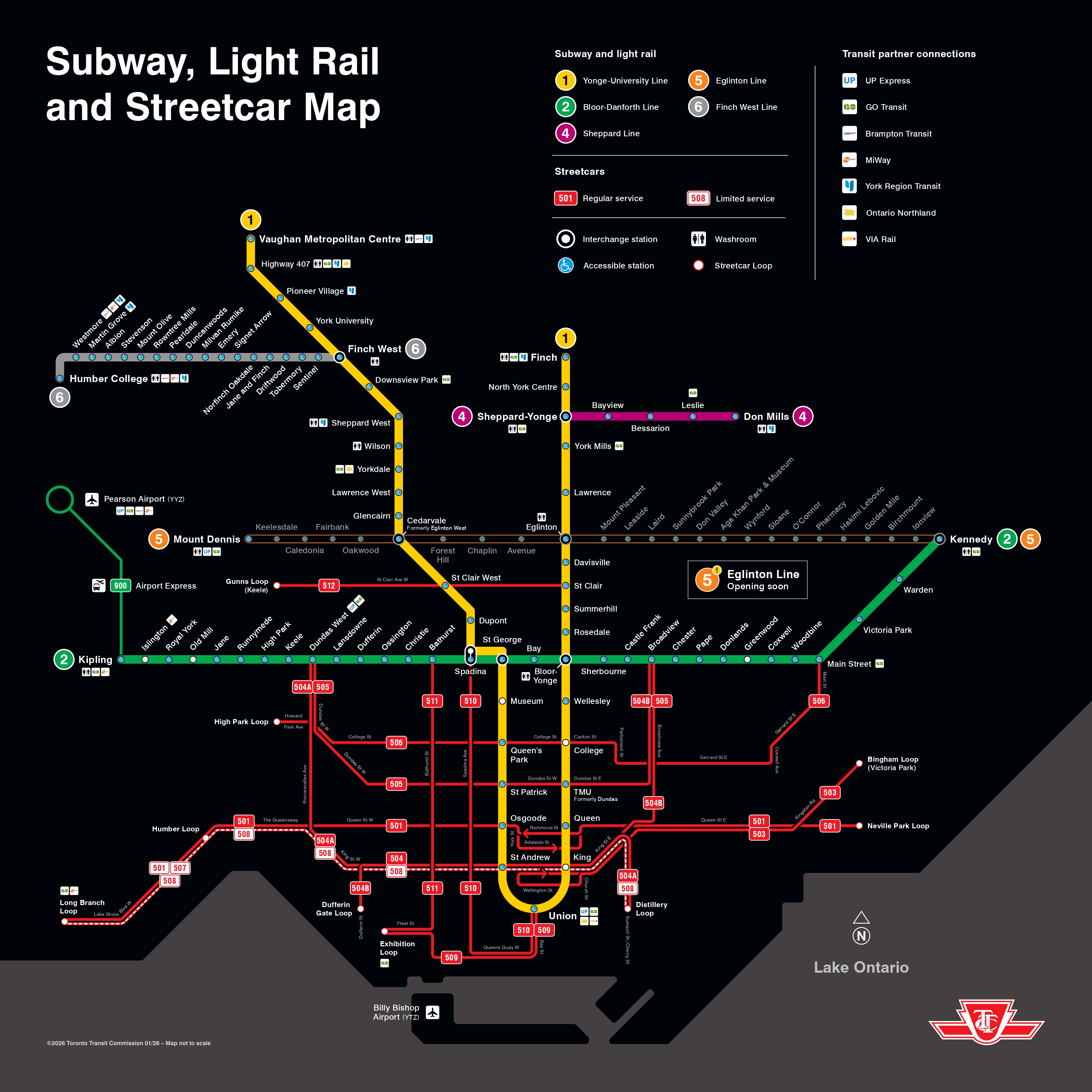 ★ 重要提醒: TTC 地鐵系統有時會因突發狀況而暫時停駛。雖然 TTC 會提供接駁車應變處理,建議您通勤時可預留彈性時間,或事先查看 TTC 官方網站掌握即時路況。