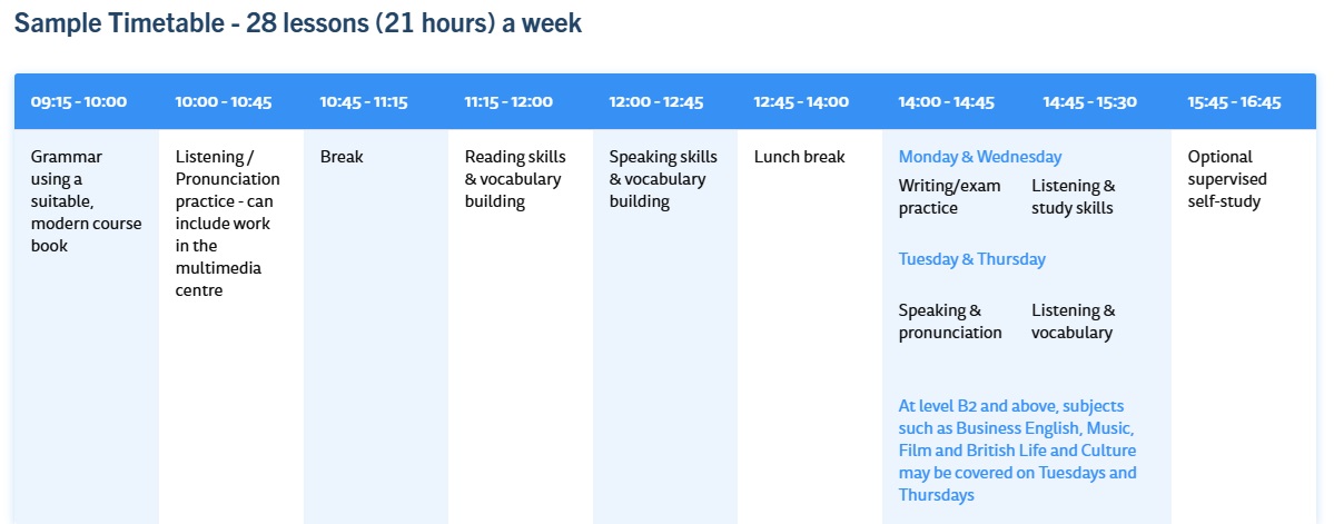 一般英語、密集英語、工作英語、城市英語、學術英語、雅思準備課程…等 |